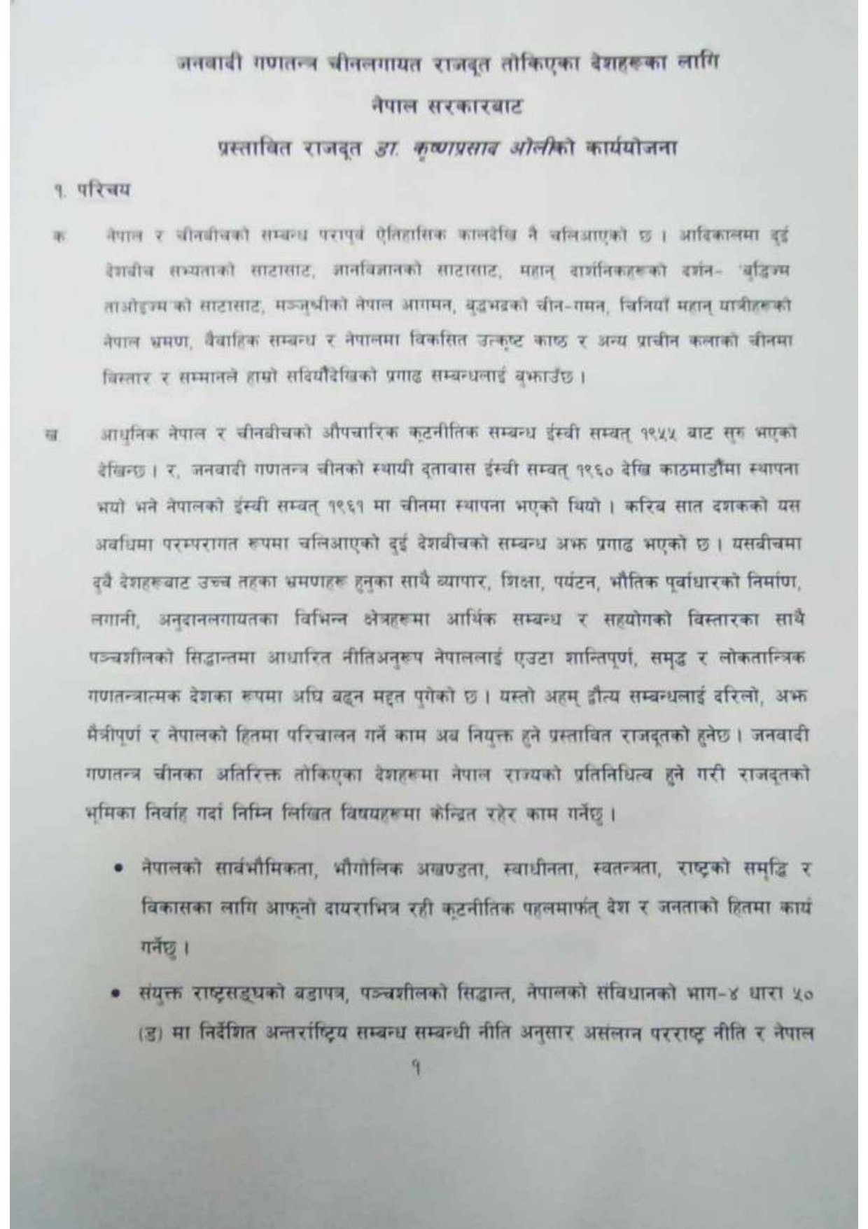 काठमाडौँ । संसदीय सुनुवाइ समितिको बैठकमा चीनका लागि प्रस्तावित राजदूत डा. कृष्णप्रसाद ओलीले आफ्नो कार्ययोजना पेस गरेका छन् ।