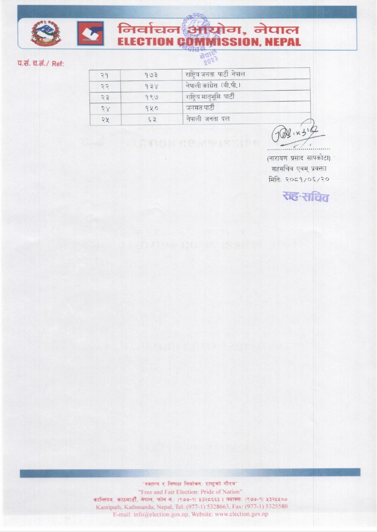 काठमाडौं । आगामी मंसिरमा हुने उपनिर्वाचनका लागि २५ दल दर्ता भएका छन् । निर्वाचन आयोगले आइतबार विज्ञप्ति जारी गरी १६ मंसिरमा हुने उपनिर्वाचनका लागि २५ दल दर्ता भएका जानकारी दिएको हो । मांसिर १६ मा स्थानीय तहका रिक्त प्रमुख, उपप्रमुख र वडा अध्यक्षका लागि उपनिर्वाचन हुँदैछ ।