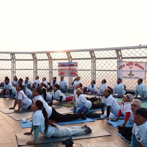 काठमाडौँ । कमलादिस्थित ‘स्काइवाक टावर’मा आज विभिन्न कार्यक्रम गरी दसौँ राष्ट्रिय योग दिवस मनाइएको छ । स्काइवाक, अष्टाङ्गयोग, योगभूमि, विश्व शान्ति ध्यान केन्द्रको संयुक्त आयोजनामा टावरको दुई सय ५६ फिटमाथिको स्काइवाकमा योगाभ्याससँगै योगबारे चर्चा गरिएको ‘स्काइवाक टावर’का प्रबन्ध निर्देशक विष्णुहरि पाण्डेले जानकारी दिए ।