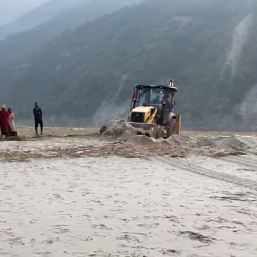 बाढीले थुपारेको गेगर हटाउन सहयोग गर्दै हलेसी तुवाचुङ नगरपालिका