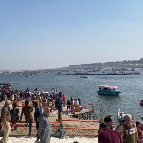 एक सय ४४ वर्षपछि भएको महाकुम्भमा पुण्य प्राप्त गर्न आएका लाखौँ भक्त नदीको एक किनारमा बनाइएका स्नानस्थलमा भगवानको नाम जप्दै डुबुल्की मारिरहेका भेटिन्छन् ।