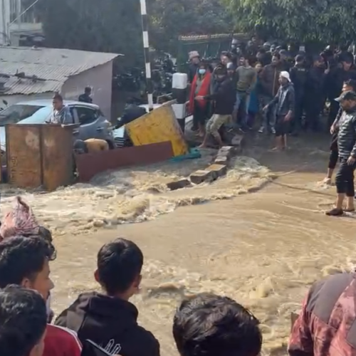 काठमाडौं । काठमाडौंको बबरमहलमा मेलम्ची खानेपानीको मुख्य पाइप फुटेपछि जलमग्न भएको छ । जिल्ला अदालत काठमाडौं अगाडि पाइप फुटेको हो ।