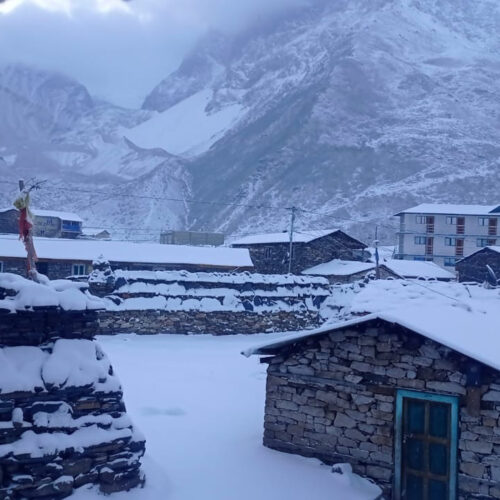 गोरखा । उत्तरी गोरखामा पुनः भारी हिमपात भएको छ । गएरातिदेखि यस पटकको हिउँदमा अहिलेसम्मकै भारी हिमपात भइरहेको स्थानीयवासी निमा लामाले जानकारी दिए । ‘‘लामो सुख्खापछि गएरातिदेखि दोस्रो पटक हिउँ परेको हो, उनले भने ‘‘दुई दिन अगाडि सामान्य हिउँ परेको भए तापनि अहिले परेको हिउँ यो यामनै सबैभन्दा ठूलो हिमपात हो ।’’