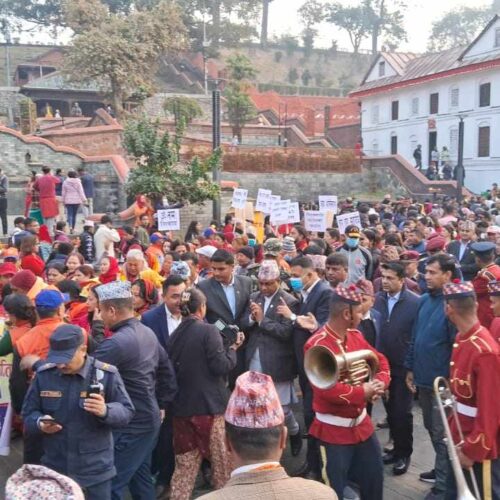 काठमाडौँ । महाशिवरात्रिको पूर्वसन्ध्यामा पशुपतिनाथ मन्दिर परिसरमा संस्कृति, पर्यटन तथा नागरिक उड्डयनमन्त्री बद्रीप्रसाद पाण्डेको नेतृत्वमा प्रभातफेरी आयोजना गरिएको छ । सोमबार पशुपति क्षेत्र विकास कोषको आयोजनामा गरिएको प्रभातफेरिमा सहभागी हुन संस्कृति, पर्यटन तथा नागरिक उड्डयन राज्यमन्त्री अरुण चौधरीका साथमा मन्त्री पाण्डे बिहान पशुपतिनाथ मन्दिर पुगेका थिए ।
