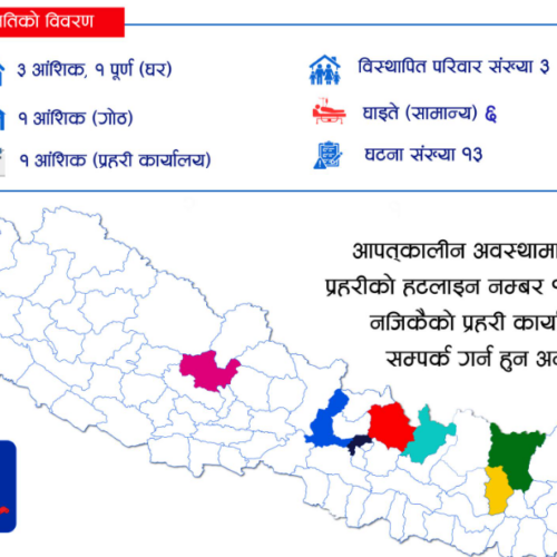 ती जिल्लामा अहिलेसम्म प्राप्त विवरण अनुसार १३ वटा घटना भएका प्रहरी नायब महानिरीक्षक आचार्यले उल्लेख गरे । शुक्रबार बिहान २ बजेर ५१ मिनेटमा भूकम्प गएको थियो । उक्त भूकम्प देशका धेरै जिल्लामा महसुस गरिएको थियो ।