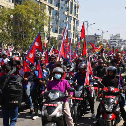 राष्ट्रिय झण्डासहित काठमाडौंमा राप्रपाको प्रदर्शन