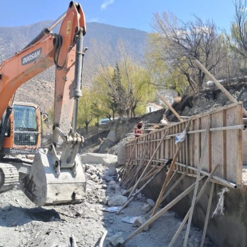 जोमसोम बजार जोगाउन धमाधम तटबन्धन गरिँदै