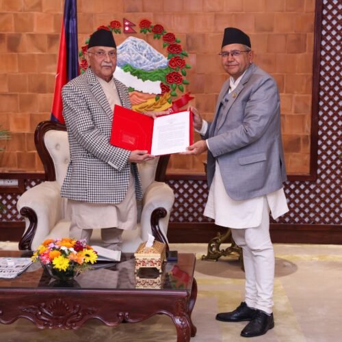 प्रधानमन्त्रीसमक्ष अन्तर–व्यवस्थापिका मञ्चको घोषणापत्र हस्तान्तरण