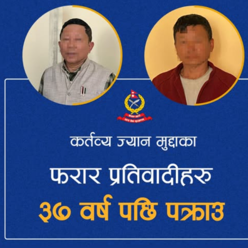 काठमाडौं । कर्तव्य ज्यान मुद्दाका फरार अभियुक्त ३७ वर्षपछि पक्राउ परेका छन् । २०४४ साल फागुन सात गते पर्वतको साबिक कुर्घा गाउँका गम्भीर गुरुङ र तेजबहादुर गुरुङ स्थानीय रामबहादुुर गुरुङको हत्या गरी फरार भएका थिए ।