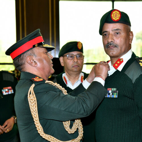 काठमाडौं । प्रधानसेनापति अशोकराज सिग्देलले बुधबार जङ्गीअड्डामा आयोजित एक कार्यक्रममा उपरथीमा विशेष पदोन्नति भएका सहायक रथी रामप्रसाद अधिकारीलाई उपरथीको दर्ज्यानी चिह्न प्रदान गरेका छन् ।
