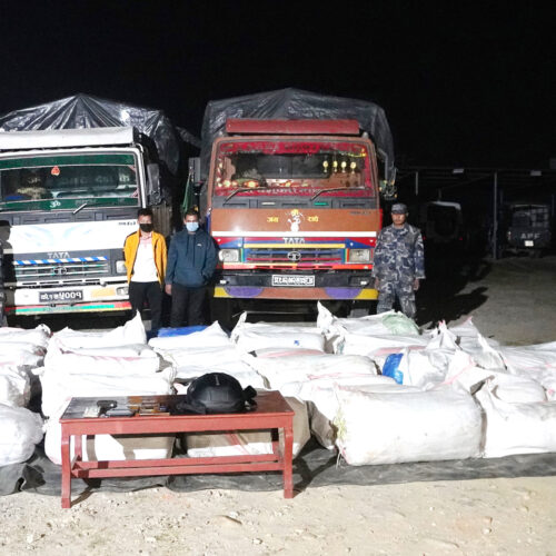 झापा । सशस्त्र प्रहरी बलले एक हजार ६३६ किलो गाँजासहित झापाबाट दुईजनालाई पक्राउ गरेको छ । प्रहरीले गाँजासहित बुद्धशान्ति गाउँपालिका–४ मेची राजमार्गबाट दुई ट्रकसहित दुवैजनालाई नियन्त्रणमा लिएको हो ।