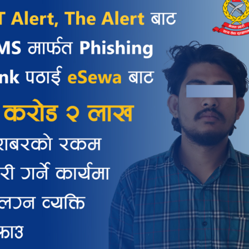 काठमाडौं । विभिन्न व्यक्तिलाई एसएमएमार्फत ‘फिसिङ लिंक’ पठाएर इ–सेवाको एक करोड दुई लाख रकम ट्रान्सफर गरी चोरी गरेको आरोपमा एक जना पक्राउ परेका छन् ।
