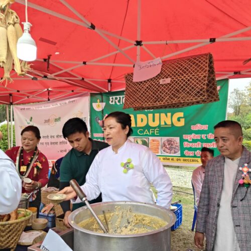 बुनु थारु, काठमाडौँ । भृकुटीमण्डपको उद्यानमा भइरहेको ‘खाना महोत्सव’मा इङ्वा सुब्बा कागुनो, याङ्बेन र मकैको खीर पकाउनमा व्यस्त छन् । छेवैमा पाक्दैछ तात्तातो सेल अनि लहरै राखिएका छन् थप परिकार । सिस्नुको सुप र च्याउ साँधेको परिकारले खानाका पारखीहरुको ध्यान गइरहेको देखिन्छ । खाना पारखीहरु स्वाद मानी मानी खाइरहेको देखिन्छन् ।