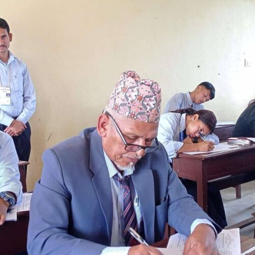 प्रतिक्षा आले, गोरखा । शिरमा ढाका टोपी, निलो सुट र घाँटीमा भवानी माध्यमिक विद्यालयको टाइ । गोरखाको पालुङटार नगरपालिका–६ का ६८ वर्षीय लालबहादुर विक अमरज्योति जनता मावि लुइँटेल परीक्षा केन्द्रमा पुग्दा सुरुमा कतिपय झुक्किए, शिक्षक हुन् कि परीक्षार्थी भनेर ।