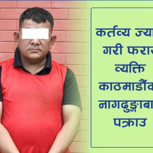 भारतमा लुकीछिपी रहेकोमा नेपाल फर्कंदै गरेको भन्ने सूचनापछि जिल्ल प्रहरी परिसर काठमाडौंको टोलीले मंगलबार दिउँसो नागढुङ्गाबाट पक्राउ गरिएको परिसरका सूचना अधिकारी अपीलराज बोहराले जानकारी दिए ।