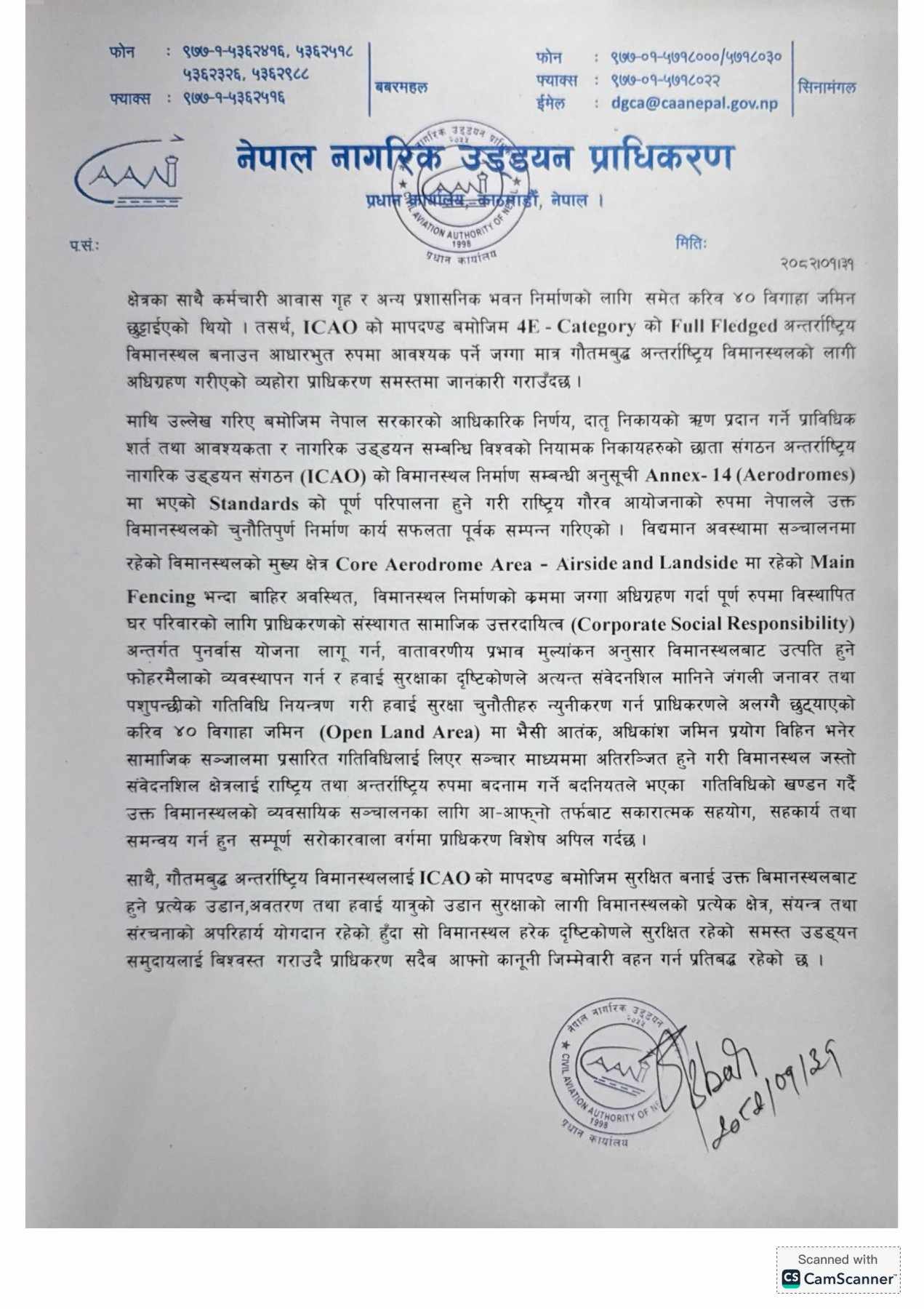 प्राधिकरणले बुधबार विज्ञप्ति जारी गरी अन्तर्राष्ट्रिय विमानस्थलका लागि आवश्यक पर्ने जग्गाको खरिद मन्त्रिपरिषदको निर्णय अनुसार भएको बताएको हो ।