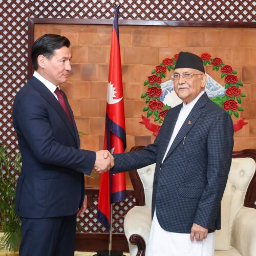 काठमाडौँ । प्रधानमन्त्री केपी शर्मा ओलीसँग रुसी महासङ्घअन्तर्गतको काल्मिकियाका प्रमुख बाटु कासिकोभ नेतृत्वको प्रतिनिधिमण्डलले शिष्टाचार भेट गरेको छ ।