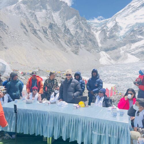 महामन्त्री शर्माको निमन्त्रणामा गृहमन्त्री रमेश लेखक र पर्यटनमन्त्री बद्री पाण्डे सगरमाथामा आधारशिविर पुगेका शर्माको सचिवालयले जनाएको छ । संवाद ३१ पटक सगरमाथा आरोहण गरेका कीर्तिमानी आरोही कामिरिता शेर्पालाई सम्मान गरेर सुरु गरिएको थियोे ।