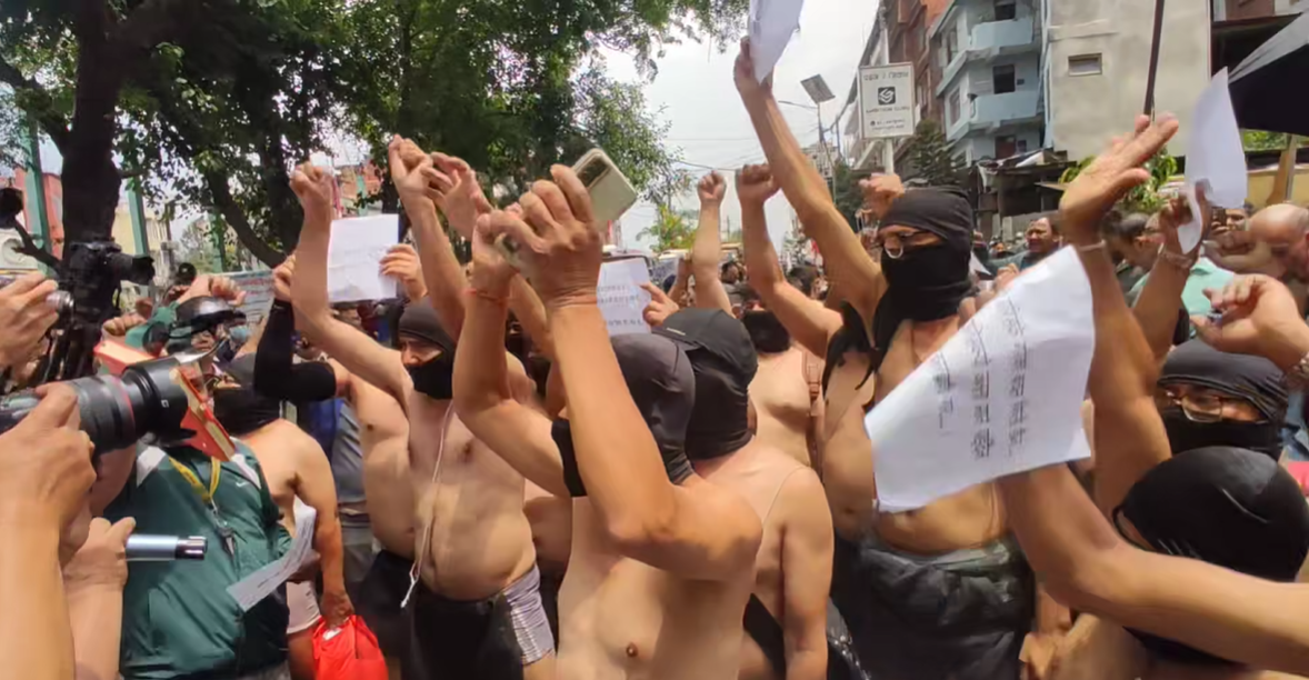 यसअघि महिलाहरूले अर्धनग्न प्रदर्शन गरेकोमा आइतबार पुरुषहरू अर्धनग्न प्रदर्शनमा उत्रिएका हुन् । उनीहरूले सहकारी संस्थाको सम्पत्ति लिलाम गरेर भए पनि बचत फिर्ता गराइदिन सरकारसँग माग गर्दै आएका छन् ।