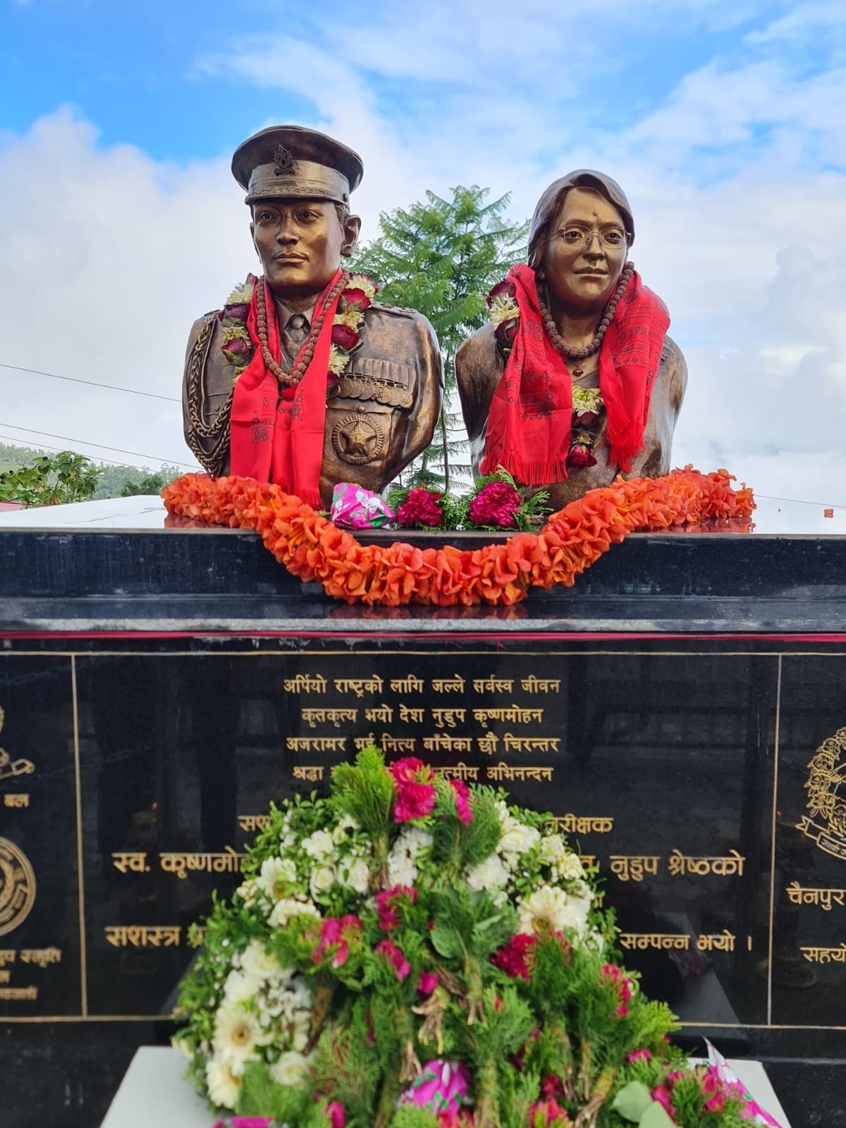पूर्वआईजी श्रेष्ठ दम्पत्तिको शालिक सशस्त्र प्रहरी बल र नगरपालिकाको संयुक्त पहलमा उनको जन्मस्थान चैनपुरमा निर्माण गरिएको थियो ।
