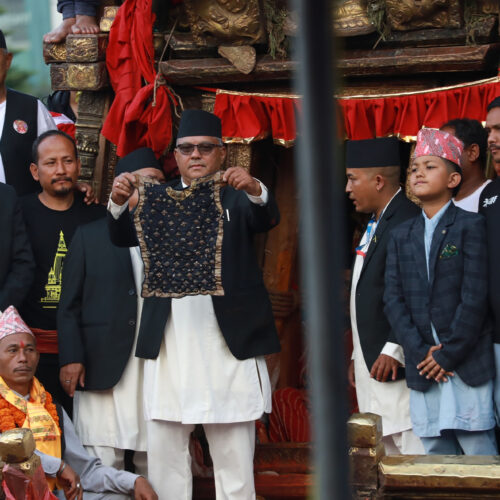 ललितपुर । राष्ट्रपति रामचन्द्र पौडेलले भोटोजात्रा अवलोकन गरेका छन् । उनी आइतबार अपरान्ह ललितपुरको जावलाखेलमा आयोजित भोटोजात्रामा सरिक भएका हुन् ।