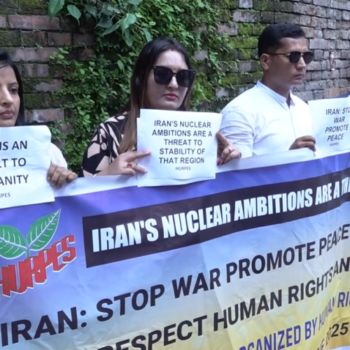 काठमाडौं । मानव अधिकार तथा शान्ति समाजले इजरायल र इरानबीचको युद्ध रोक्न माग गर्दै बुधबार काठमाडौंमा प्रदर्शन गरेको छ ।