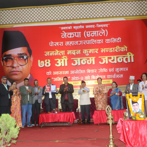 शनिबार पार्टीको पोखरा महानगर कमिटीले आयोजना गरेको मदन भण्डारीको ७४ औं जन्म जयन्ती कार्यक्रममा महासचिव पोखरेलले एमालेविरुद्ध ध्रुब खडा गर्न अवसरवादी तत्व सलबलाएको बताए । उनले भने, ‘मलाई लाग्छ हाम्रो सम्माननीय पूर्वराष्ट्रपति नेकपा एमालेको विकास र समृद्धिको आकांक्षाबाट बाहिर जान सक्नुहुन्छ भन्ने म ठान्दिनँ ।’