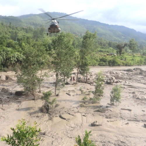 काठमाडौँ । नेपाल–चीनको सिमानाको ल्हेन्दे खोलामा गएराति आएको भीषणका कारण त्रिशूली नदीको उच्च वहावमा फसेका दुई जनाको सकुशल उद्धार गरिएको छ । नेपाली सेनाको हेलिकप्टरद्वारा बाढीमा फसेका दुई जनाको सकुशल उद्धार गरेको राष्ट्रिय विपद् जोखिम न्यूनीकरण तथा व्यवस्थापन प्राधिकरणले जनाएको छ ।