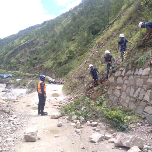 काठमाडौं । असार २४ गते मध्यरातमा भोटेकोशीमा आएको बाढी कारण पूर्ण रुपमा बन्द भएको स्याफ्रुबेंशी र रसुवागढी सडकखण्ड सशस्त्र प्रहरीसहितको सुरक्षार्मीले अस्थायी पदमार्ग बनाई ४ सय ८५ भन्दा बढीलाई सुरक्षाकासाथ गन्तव्यतर्फ पुर्याएको छ । साथै भन्सार कार्यालय यार्डमा फसेका २ वटा कन्टेनर र १ ईभी गाडीलाई सुरक्षित स्थानमा सारिएको  सशस्त्र प्रहरीका सहप्रवक्ता डीएसपी शैलेन्द्र थापाले जानकारी दिए ।
