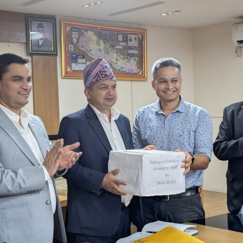 डाइरेक्ट रिलिफले स्तन, छाला तथा विभिन्न खालका क्यान्सर उपचारमा आवश्यक पर्ने दुर्लभ र महङ्गा औषधी नेपालको आवश्यकताअनुसार पाँच वर्षसम्म सहयोग स्वरुप उपलब्ध गराउने मन्त्री पौडेलले जानकारी दिए ।