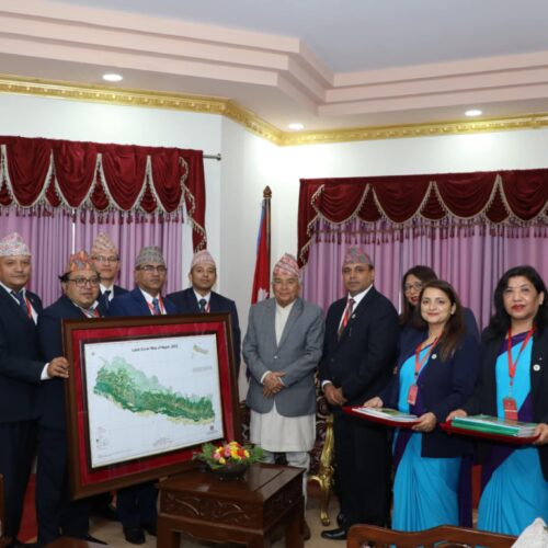 काठमाडौँ । राष्ट्रपति रामचन्द्र पौडेलले ‘नेसनल ल्यान्ड कभर म्याप २०२०/२०२२’ (राष्ट्रिय भू– ढकान नक्सा) मंगलबार राष्ट्रपति भवन शीतल निवासमा सार्वजनिक गरेका छन् ।