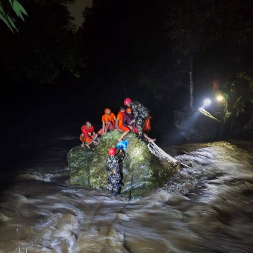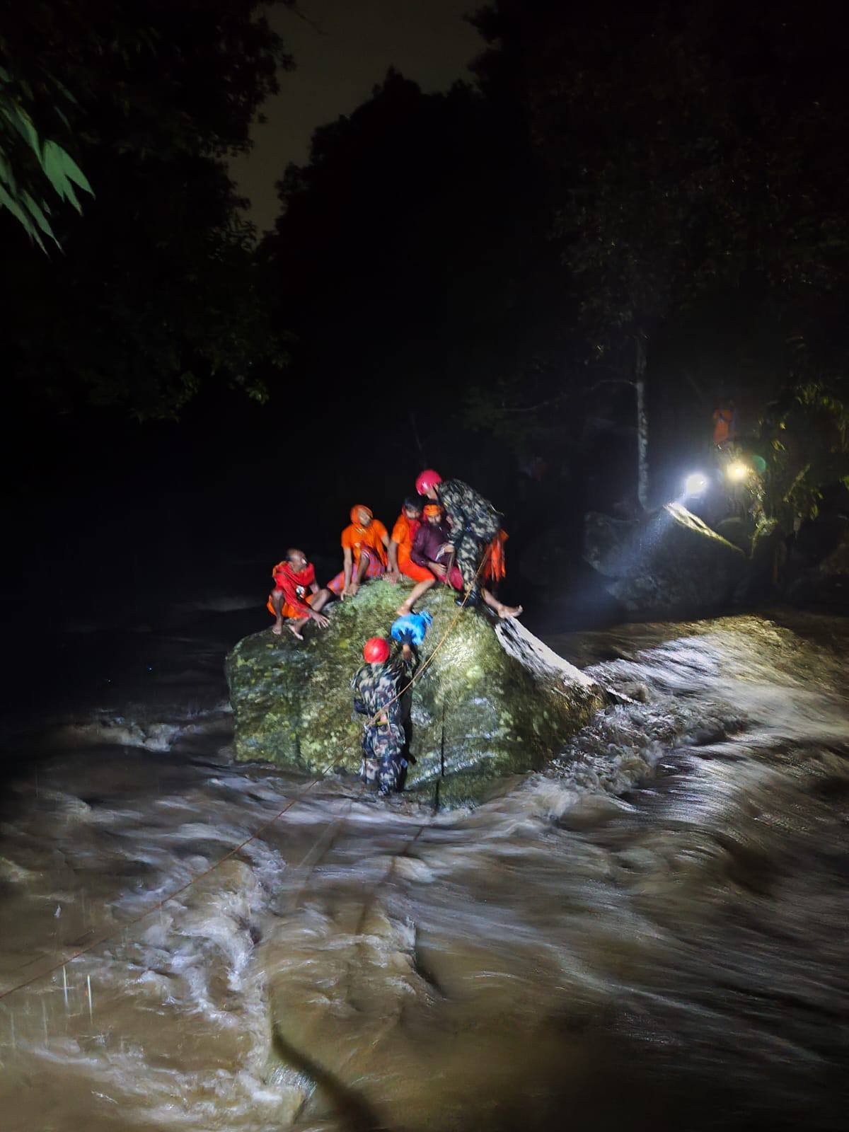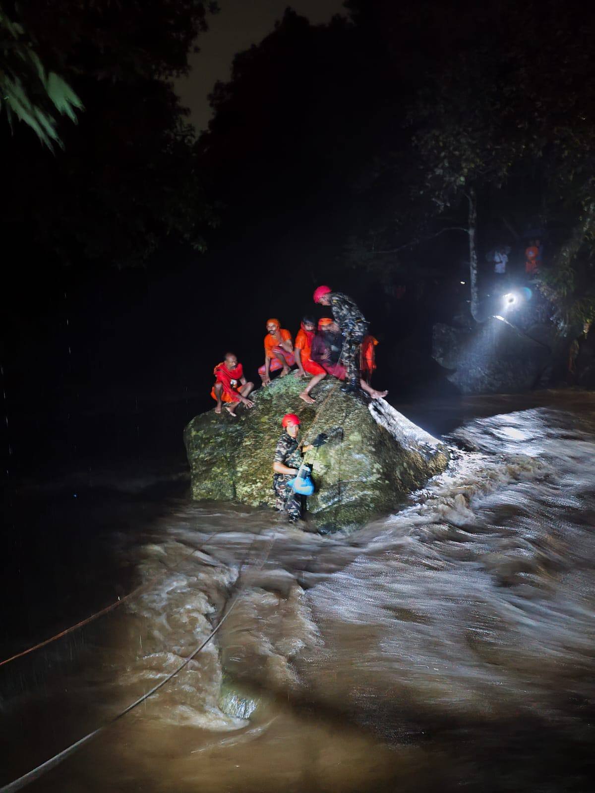 गएराति आकस्मिक रूपमा पानीको बहाव बढ्दा खोलाको बीचमा फसेका उनीहरूलाई नेपाली सेनासहितको टोलीले उद्धार गरेको हो ।