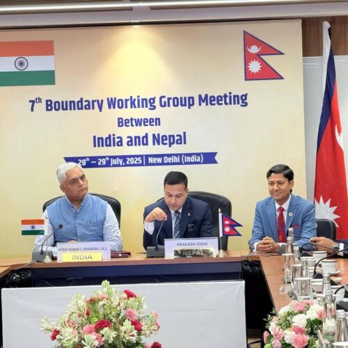 काठमाडौं । नेपाल–भारत सीमा कार्यदलको सातौँ बैठक मंगलबार नयाँ दिल्लीमा सौहार्दपूर्ण र मैत्रीपूर्ण वातावरणमा सम्पन्न भएको छ । नेपाली प्रतिनिधिमण्डलको नेतृत्व नापी विभागका महानिर्देशक प्रकाश जोशीले गरेका थिए भने भारतीय प्रतिनिधिमण्डलको नेतृत्व त्यहाँको नापी विभागका महानिर्देशक हितेशकुमार एस. मकवानाले गरेका थिए ।