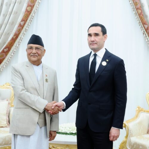 काठमाडौं । प्रधानमन्त्री केपी शर्मा ओली र तुर्कमेनिस्तानका राष्ट्रपति सरदार बेरदिमुहामेदोभबीच भेटवार्ता भएको छ ।