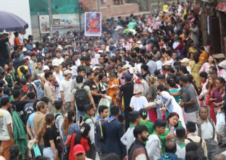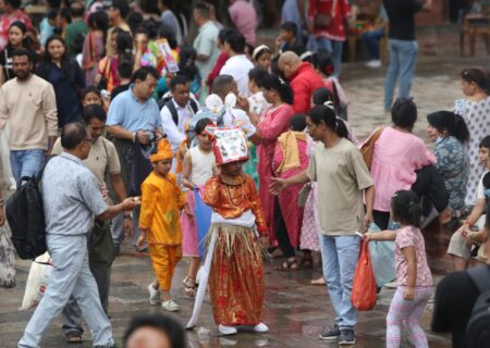 काठमाडौँ । राजधानीको वसन्तपुरमा गाईजात्रा निकालिएको छ । आजका दिन गाई वा मानिसलाई गाईका रूपमा सिङ्गारी आ–आफ्ना क्षेत्रमा परिक्रमा गराउने र उनीहरूलाई श्रद्धालुद्वारा दूध, फलफूल, रोटी, चिउरा, दहीलगायत अन्न द्रव्य दान दिने चलन छ ।