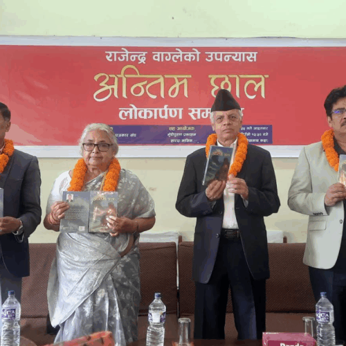 काठमाडौँ । उपन्यासकार राजेन्द्र वाग्लेले लेख्नुभएको उपन्यास ‘अन्तिम छाल’ सार्वजनिक भएको छ । साहित्यक पत्रकार सङ्घको आयोजना र भुँडीपुराण प्रकाशन सहआयोजनामा आइतबार उक्त कृतिको पूर्वप्रधानन्यायाधीश सुशीला कार्की, सर्वोच्च अदालतका पूर्वन्यायाधीश ईश्वरप्रसाद खतिवडा, वरिष्ठ समालोचक प्रमोदप्रधान, अभिनेता सरोज खनालले संयुक्तरुपमा सार्वजनिक गरेका हुन् ।