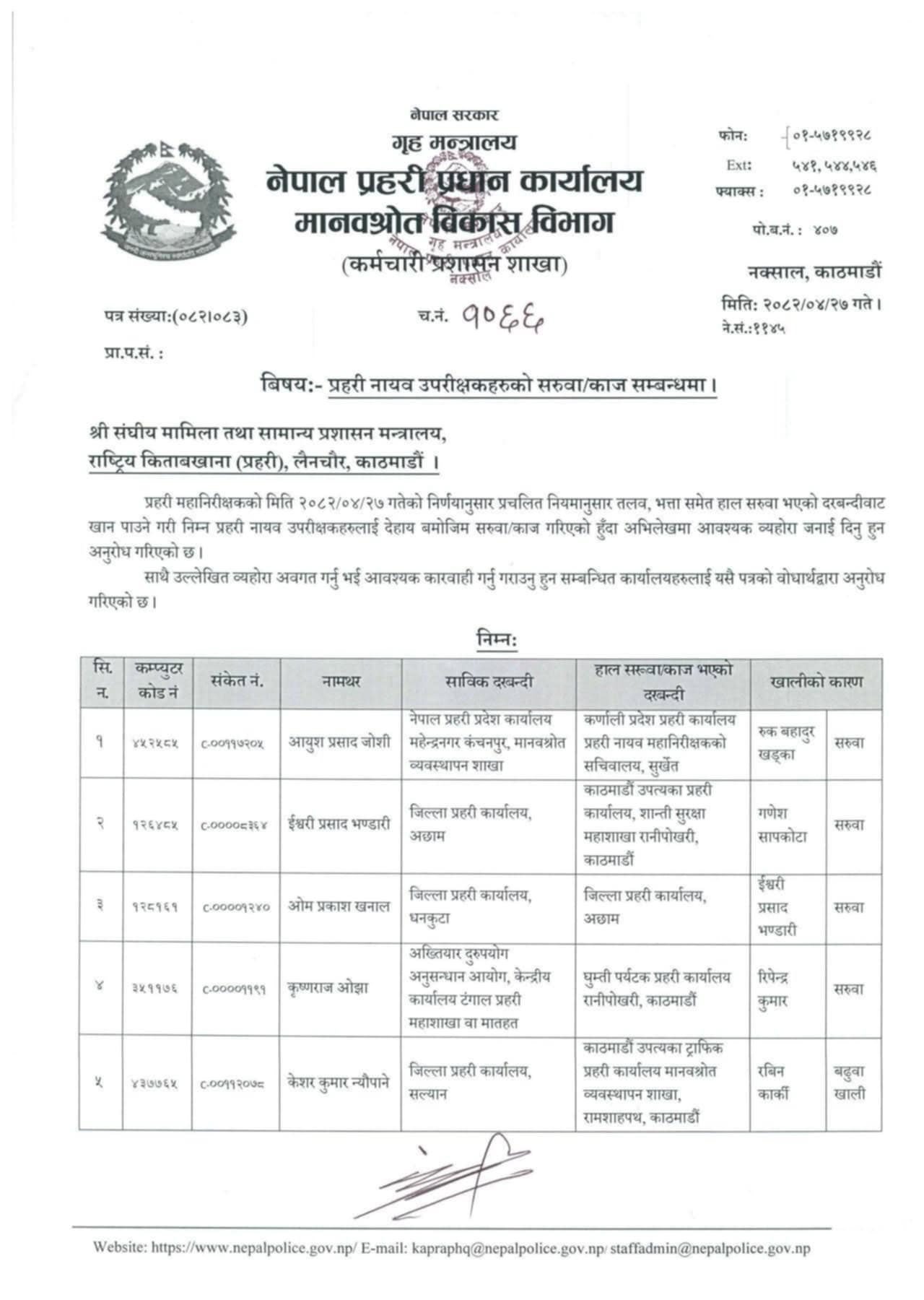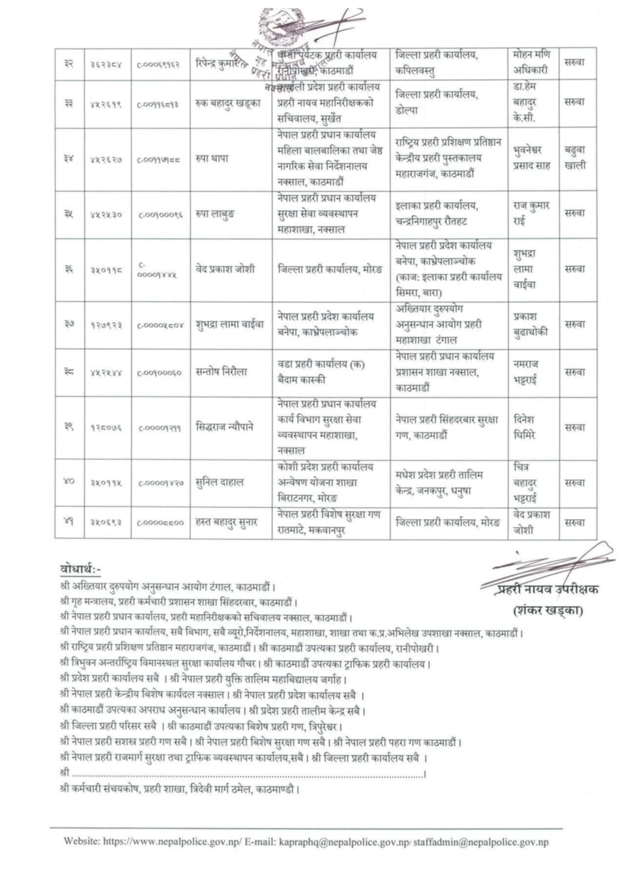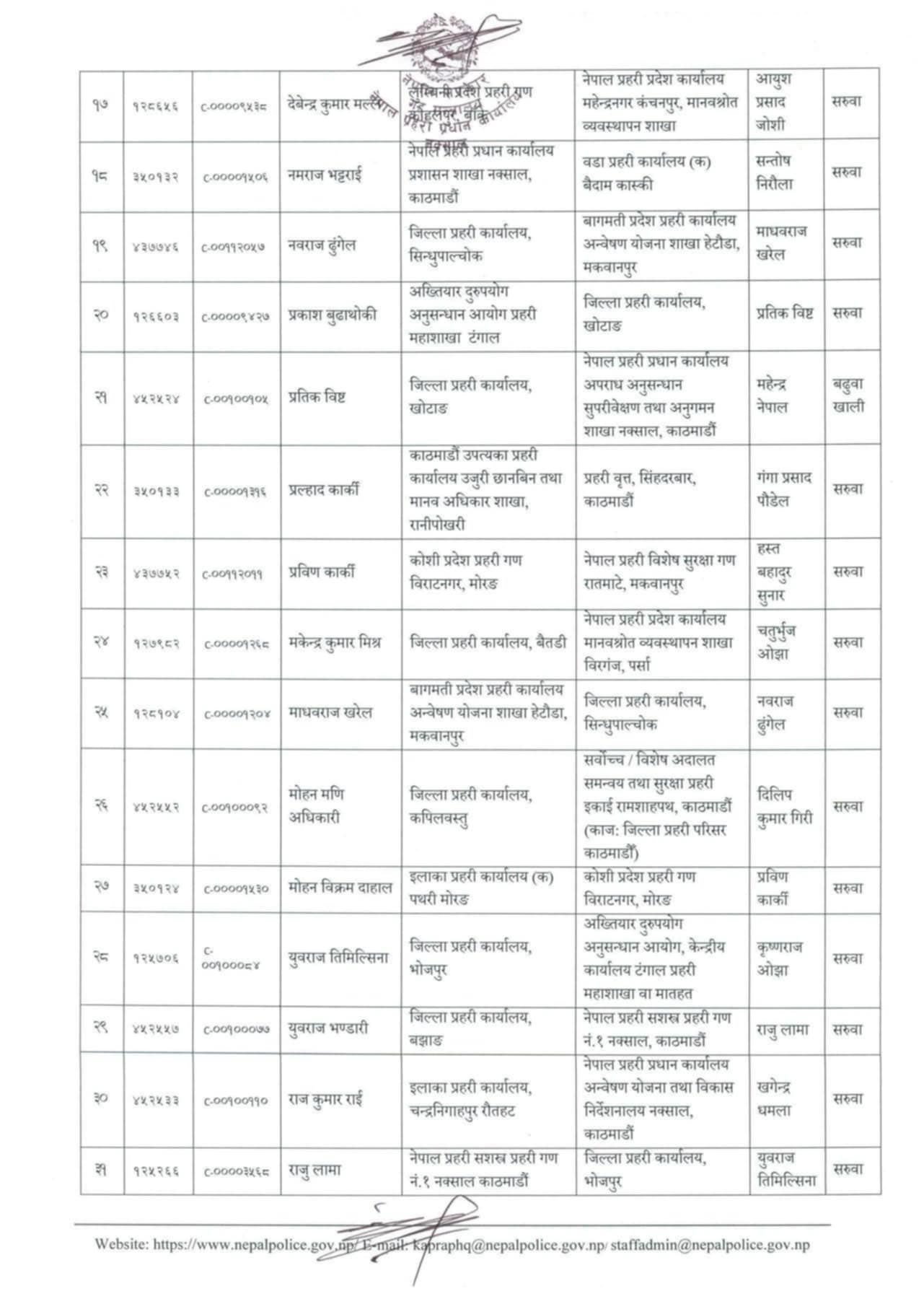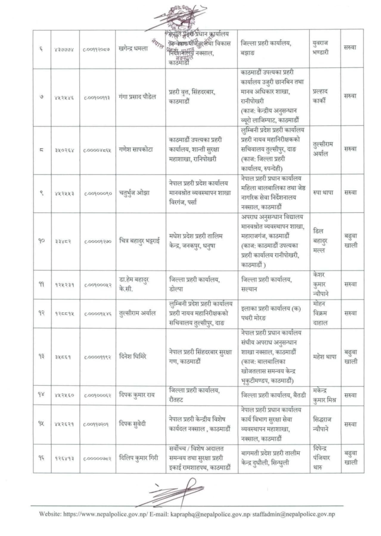 सरुवा भएका डीएसपीहरूलाई हाल सरुवा भएको दरबन्दीवाट तलब, भत्ता पाउने व्यवस्था गरिएको परिपत्रमा उल्लेख छ ।