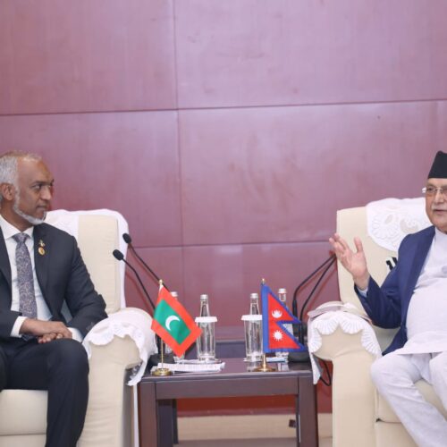 थियानजिन (चीन) । प्रधानमन्त्री केपी शर्मा ओली र गणतन्त्र माल्दिभ्सका राष्ट्रपति डा मोहमद मिज्जुबीच दुईपक्षीय भेटवार्ता भएको छ ।