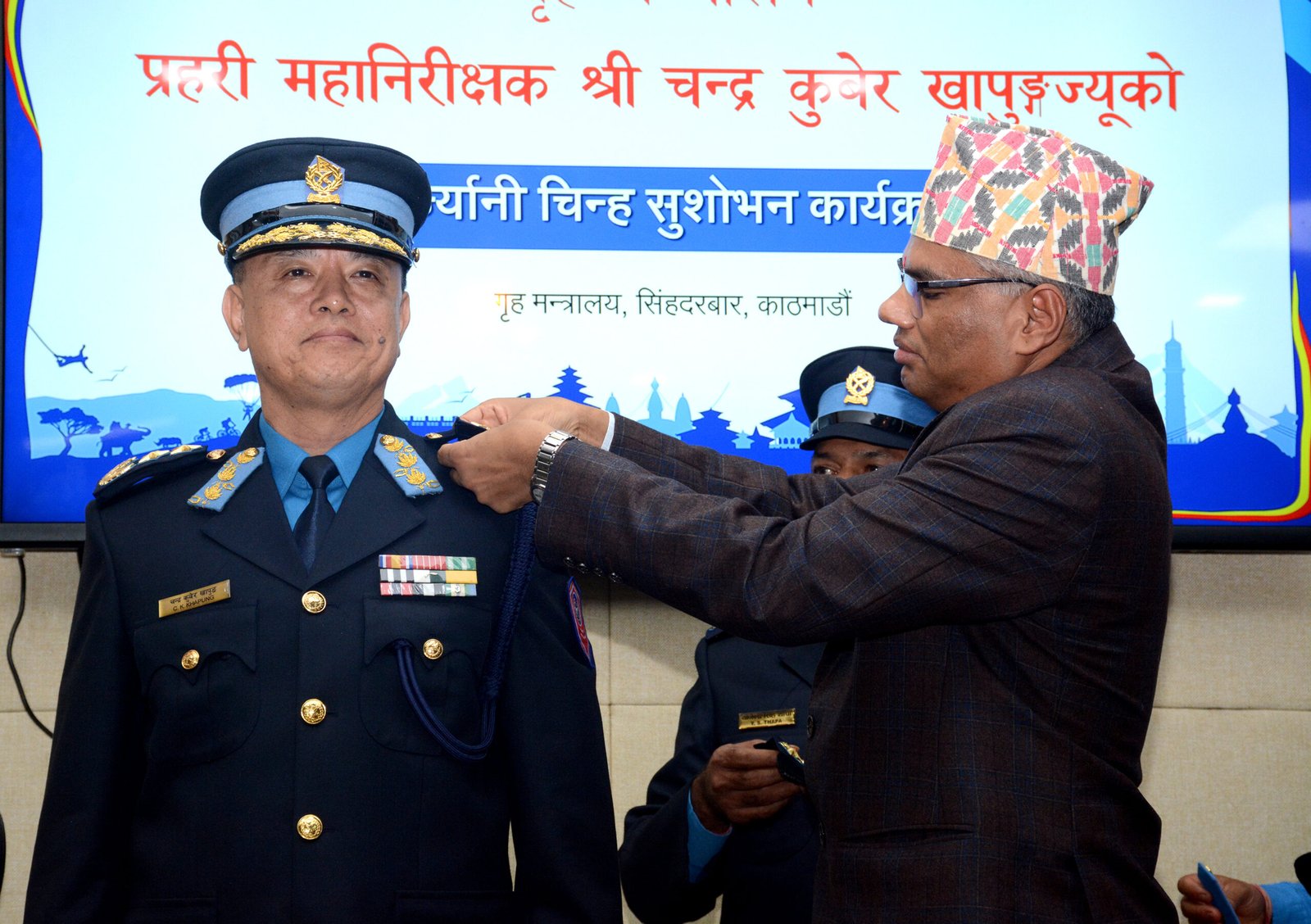 नवनियुक्त प्रहरी महानिरीक्षक खापुङलाई दर्ज्यानी चिह्न प्रदान