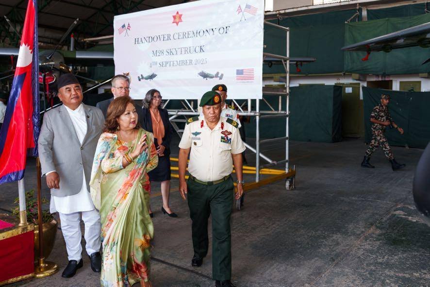 काठमाडौं । अमेरिकाले नेपाली सेनालाई एउटा स्काई ट्रक र एयर एम्बुलेन्स प्रदान गरेको छ । बिहीबार बिहान जंगीअड्डामा आयोजित कार्यक्रममा प्रधानसेनापति अशोकराज सिग्देललाई नेपालका लागि अमेरिकी राजदूत डिन आर. थप्सनले स्काई ट्रक र एयर एम्बुलेन्स हस्तान्तरण गरेका छन्