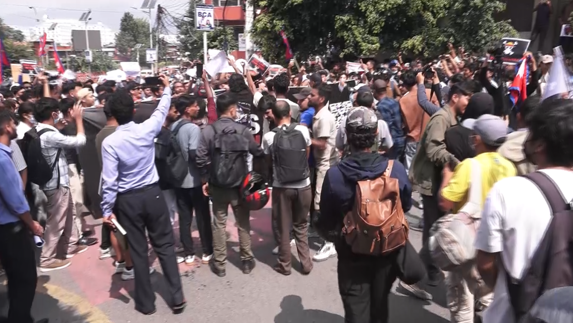 काठमाडौं । सामाजिक संजाल बन्द र भ्रष्टाचारविरुद्ध जेनजी पुस्ताले सोमबार काठमाडौंमा प्रदर्शन गरेको छ । विभिन्न नारासहितका प्लेकार्ड बोकेर उनीहरुले माइतीघरदेखि नयाँबानेश्वरसम्म प्रदर्शन गरेका हुन् । प्रदर्शनमा सहभागी हुन कतिपय विद्यार्थी कलेज ड्रेसमै आएका थिए ।