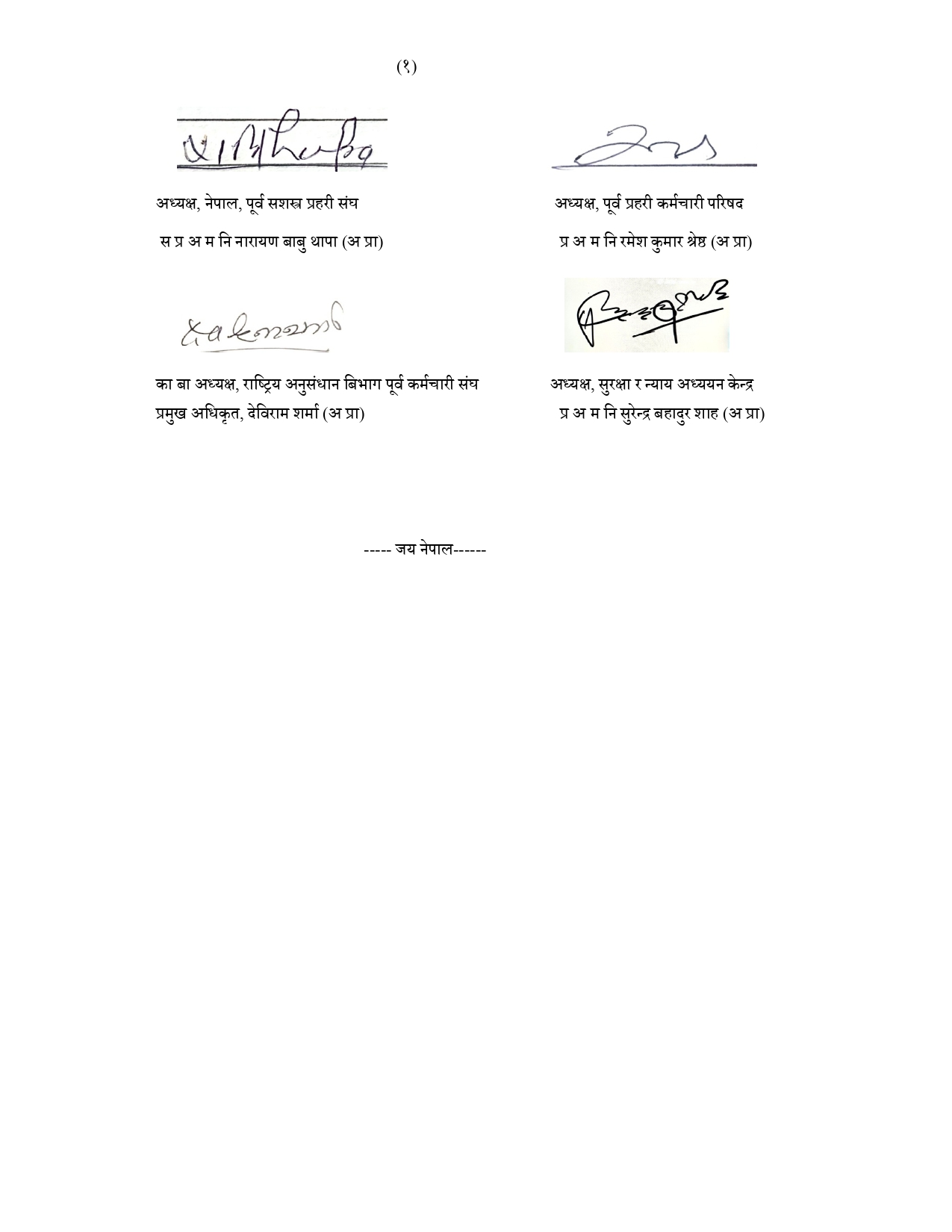 काठमाडौं । पूर्वप्रहरी अधिकारीहरुले जेनजी आन्दोलनमा भएको धनजनको क्षतिप्रति दुःख व्यक्त गरेका छन् । नेपाल प्रहरीका पूर्वप्रहरी महानिरीक्षक फोरम मोतिलाल बोहरा, नेपाल प्रहरीका पूर्वअतिरिक्त महानिरीक्षक विनोद सिंह, पूर्वसशस्त्र प्रहरी संघका अध्यक्ष नारायणबाबु थापा, पूर्वप्रहरी अतिरिक्त महानिरीक्षक रमेश कुमार श्रेष्ठ, राष्ट्रिय अनुसन्धान विभाग पूर्वप्रमुख देवीराम शर्मा र पूर्व प्रहरी अतिरिक्त महानिरीक्षक सुरेन्द्र बहादुर शाहले विज्ञप्ति जारी गरी जेनजी समूहको आह्वानमा यही भदौ २३ र २४ गते काठमाडौंसहित देशका विभिन्न शहरहरूमा भएका प्रदर्शनहरूले हिंसात्मक रूप लिँदा दर्जनौ नागरिक र सुरक्षाकर्मीको ज्यान गएको तथा सयौं घाइते भएको खबरले अत्यन्त दुःखी भएको बताएका हुन् ।