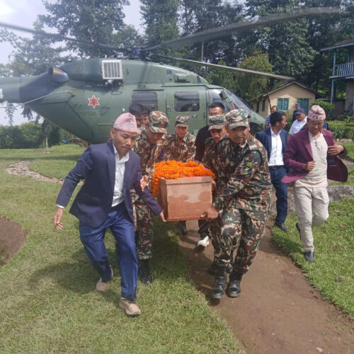 किमाथाङ्का (सङ्खुवासभा) । भदौ २३ र २४ गते काठमाडौँमा भएको जेनजी प्रदर्शनका क्रममा सहादत प्राप्त गरेका सङ्खुवासभा, सिलिचोङ गाउँपालिका–३ का २१ वर्षीय प्रवीन कुलुङको पार्थिव शरिरलाई सङ्खुवासभा ल्याइएको छ ।