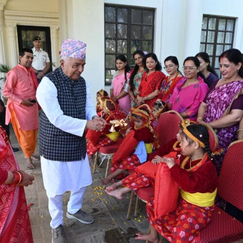 काठमाडौँ । राष्ट्रपति रामचन्द्र पौडेलले नेपालीहरुको महान चाड बडादसैँको नवौँ दिन बुधबार नवकन्याहरुको पूजा गरेका छन् ।
