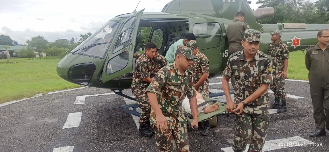 इलाम । इलामको माङसेबुङका पहिरो पीडितलाई नेपाली सेनाले उद्दार गरेको छ । आइतबार इलामको माङसेबुङ गाउँपालिका–१ पातीगाउँमा पहिरोमा परी गम्भीर घाइते भएका एक पुरुष र एक गर्भवती महिलालाई नेपाली सेनाको हेलिकप्टरमार्फत थप उपचारको लागि इटहरी लगिएको सेनाले जनाएको छ ।