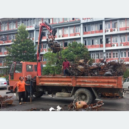 जलेका सवारीसाधनको व्यवस्थापन नयाँ बानेश्वरस्थित अन्तरराष्ट्रिय सम्मेलन केन्द्र परिसरमा गरिएको छ। सिंहदरबारभित्र जलेका सवारीको व्यवस्थापन पूरा भएपछि अन्य स्थानका जलेका सवारी उठाइने विभागका कर्मचारी विष्णुकुमार महर्जनले जानकारी दिए।