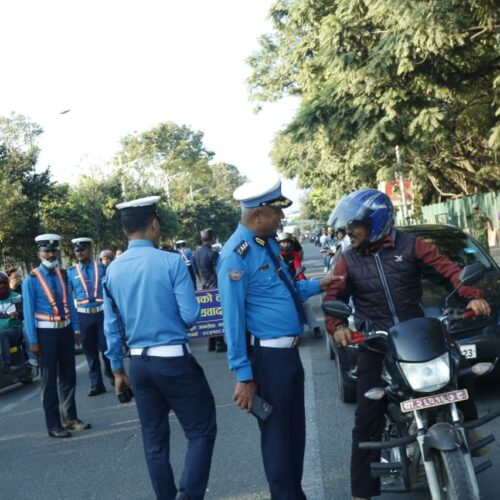उपत्यकाका विभिन्न स्थानमा ट्राफिक प्रहरीले ‘मापसे नगरी सवारी चलाऔँ, सुरक्षित यात्रामा सबैको साथ दिऔँ’ नारासहित सडक प्रयोगकर्तामाझ सचेतनामूलक पर्चा वितरण र माइकिङसमेत गरेको थियो ।
