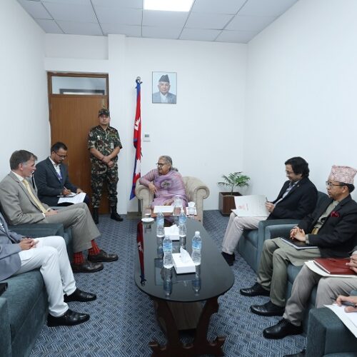 काठमाडौं । नेपालका लागि जर्मनीका राजदूत उडो भोल्जले प्रधानमन्त्री सुशीला कार्कीसँग शिष्टाचार भेट गरेका छन् ।