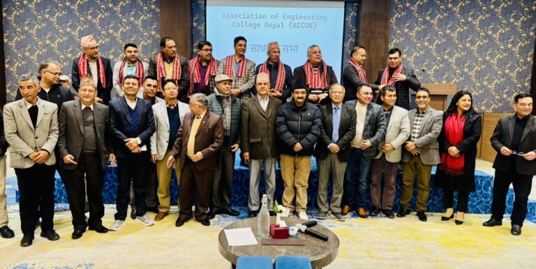 काठमाडौं । नेपालका विश्वविद्यालयबाट सम्बन्धन प्राप्त इन्जिनियरिङ कलेजहरूको छाता संस्था एशोसियसन अफ इन्जिनियरिङ कलेजेज अफ नेपाल (AECoN) को साधारण सभाले नयाँ कार्यसमिति चयन गरेको छ ।