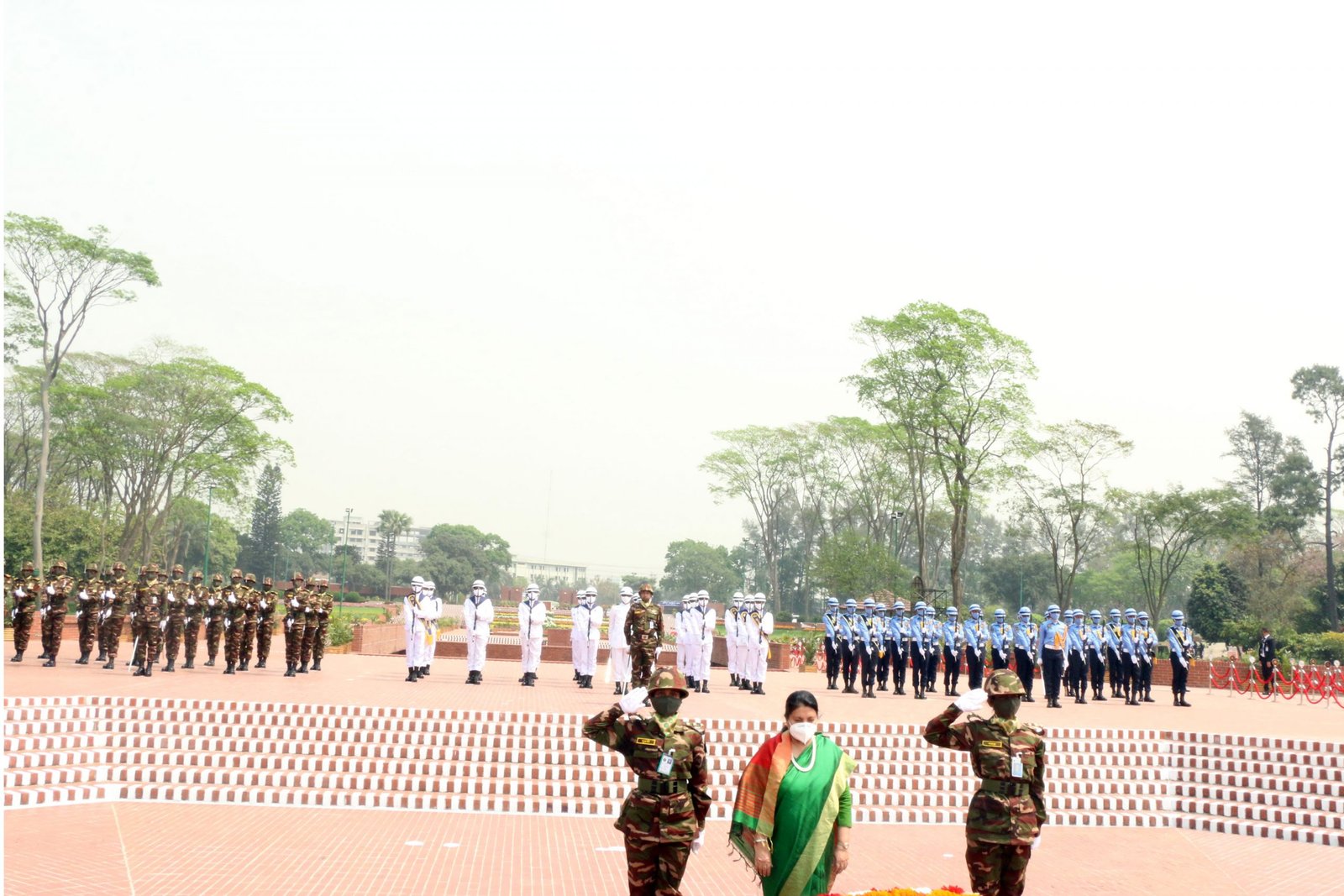राष्ट्रपति भण्डारीले त्यसपछि यहाँको राष्ट्रिय शहीद स्मृति, सभारमा शहीदप्रति श्रद्धाञ्जलि अर्पण गरिन् । त्यहाँ उनले वृक्षरोपण पनि गरिन् । राष्ट्रपति भण्डारी हाल आवासका लागि प्रबन्ध गरिएको इन्टरकन्टिनेन्टल होटेलमा आइपुगेकी छन् ।